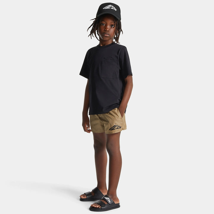 Short polyester boxer shorts. Elastic waistband. Branded with branded Icon New Generation logo in contrasting colour on front. Inner briefs. Front welt pockets.