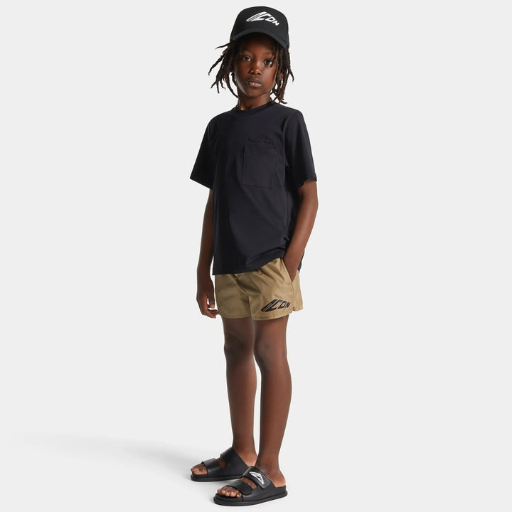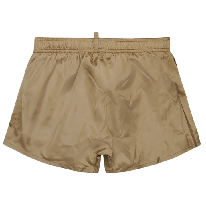 Boys Beige Icon-Logo Boxer Swimsuit