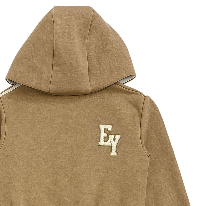 This boys beige hoodie features a comfortable, relaxed fit crafted from soft cotton material, perfect for everyday wear. It is designed with a classic hood, long sleeves, and ribbed cuffs and hem for a secure and cozy feel. The look is completed with