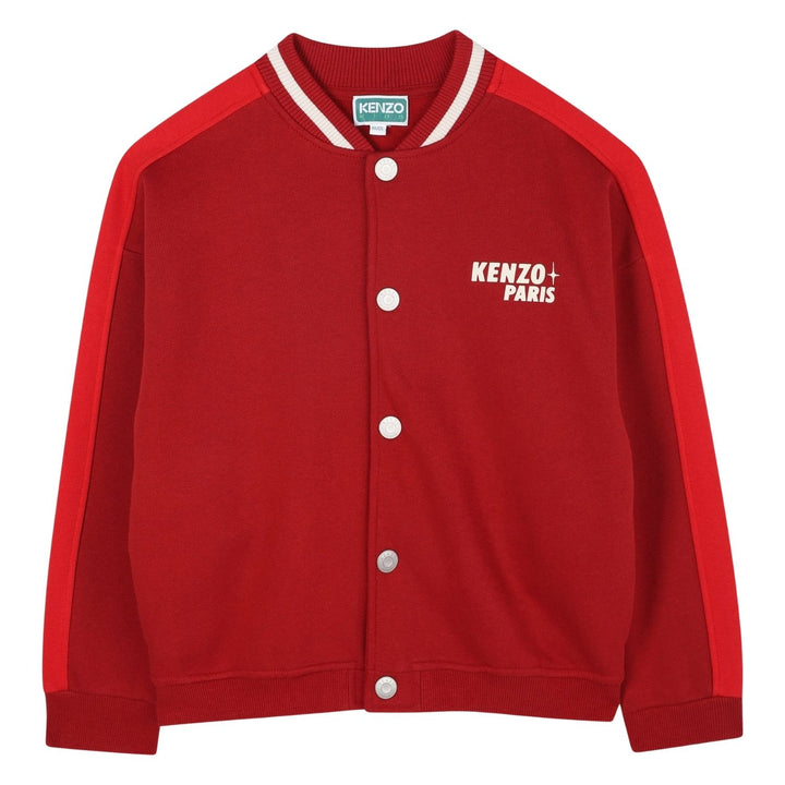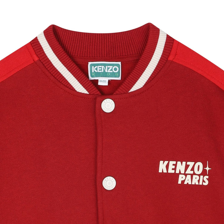 This stylish beige jacket from Kenzo Kids features a full front zip, two bright yellow zippered pockets, and elastic cuffs and hem for a comfortable fit. The chest is decorated with an embroidered Kenzo logo and a bold tiger emblem, adding signature