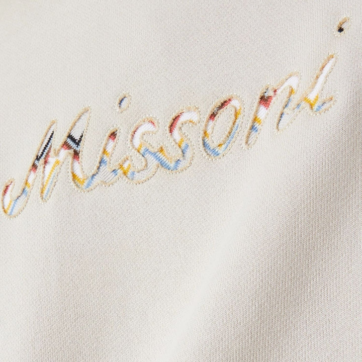 Boys beige logo-print hoodie by Missoni crafted from soft premium cotton, featuring the brands signature multicolor logo across the chest for a cozy yet refined casual style.