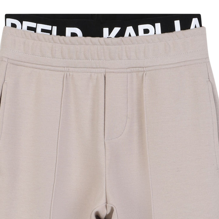 Smart beige straight-leg trousers for boys by Karl Lagerfeld, crafted from soft cotton for a refined and comfortable fit.