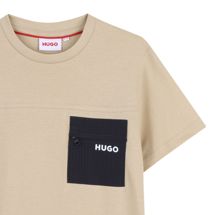 Boys Beige Zip-Pocket T-Shirts