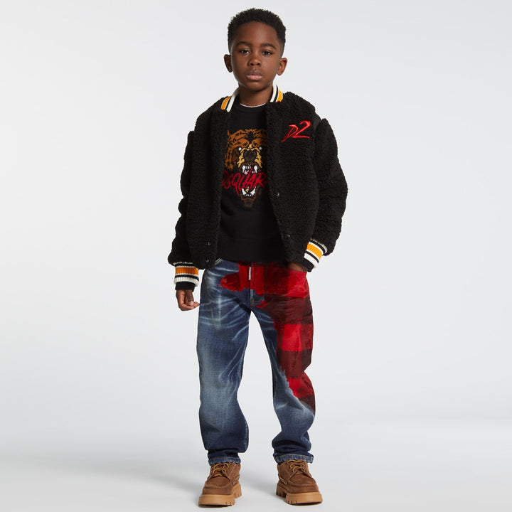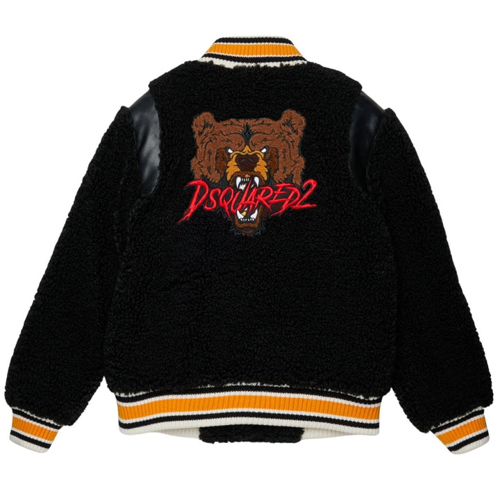 Crafted with signature Dsquared2 flair, this unisex black jacket features bold bear and logo embroidery for a standout look. Designed with premium quality and contemporary edge, it brings effortless luxury to casual outerwear.