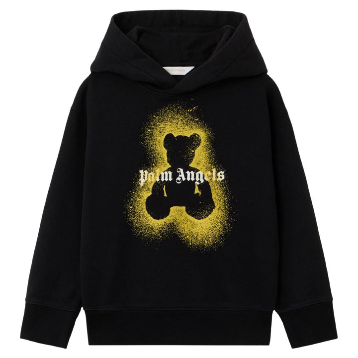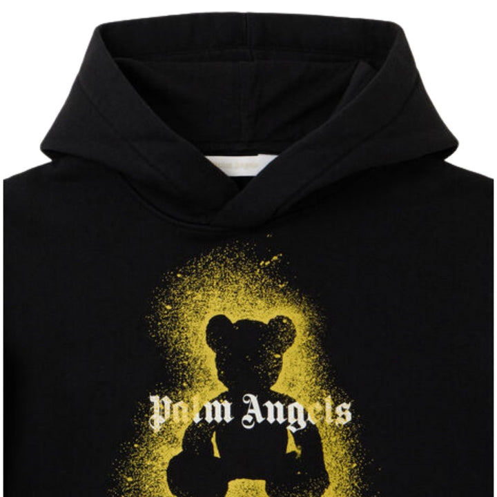 A bold yet cozy statement piece, this boys black hoodie from Palm Angels features the brands signature teddy bear logo print across the chest.