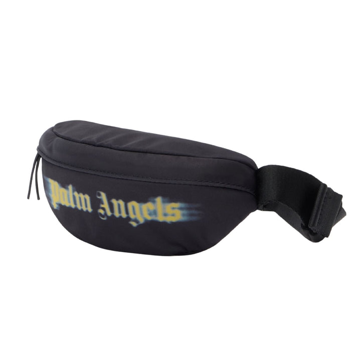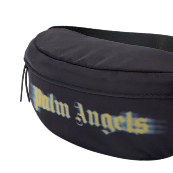 This sleek black belt bag from Palm Angels combines streetwear aesthetics with practicality. Featuring the brands distinctive blurred logo print across the front, it includes a secure zip closure and adjustable strap for comfort.