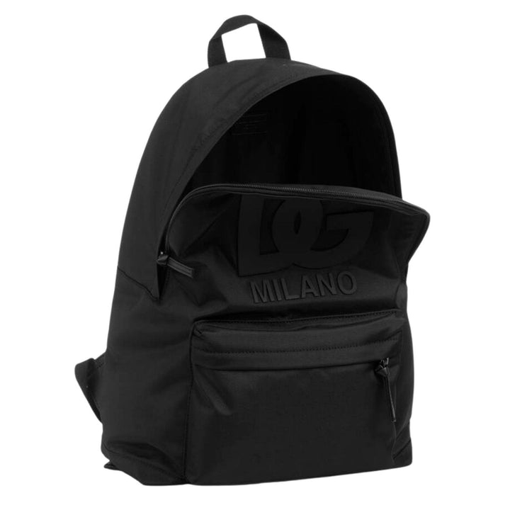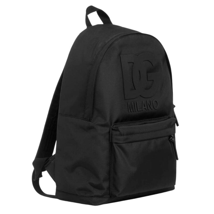 Perfect for school days or weekend outings, this Black backpack from Dolce & Gabbana Kids combines practicality with signature style. Made in Italy, it features an embossed logo detail on the front, a handy front zip pocket, and adjustable shoulder s