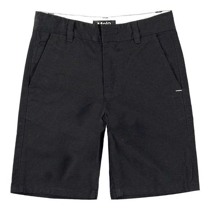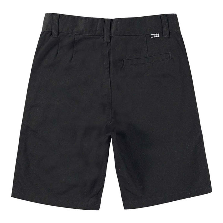 Boys Alan is a pair of classic, black chino shorts in 1% cotton. They have belt loops, side pockets, a single back pocket, and they are in a regular fit. The waistband has an inner, adjustable elastic, which makes them a perfect fit for all kids. Siz