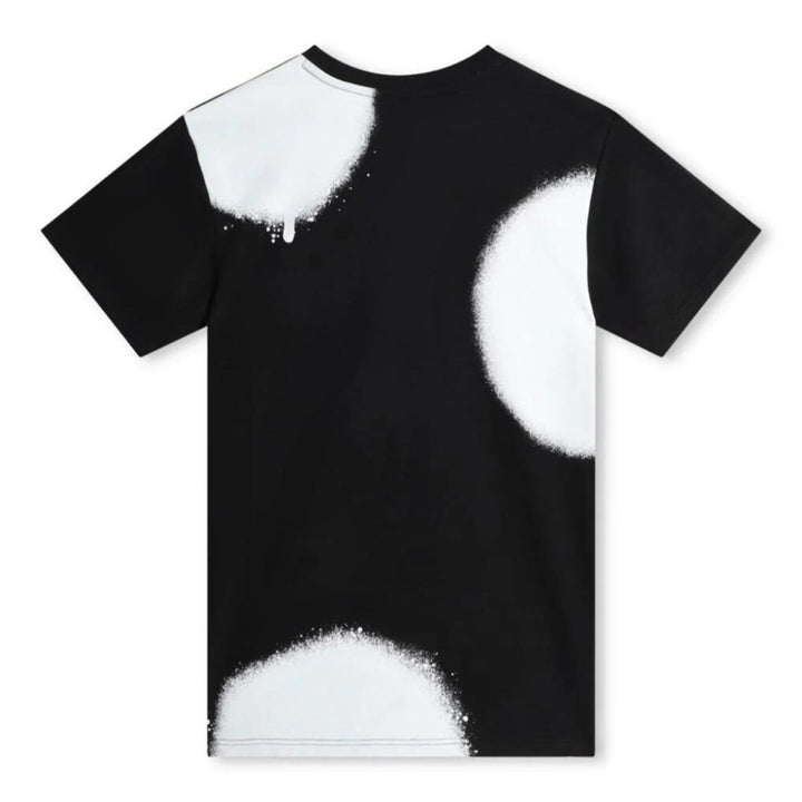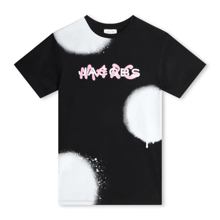 Boys black organic cotton T-shirt by MARC JACOBS, printed with bold, black, spray paint dots. This casual short-sleeved top has a classic crew neck and a statement black and blue spray paint logo print across the front.