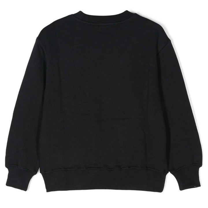 An black relaxed-fit sweatshirt for boys from MSGM. Cool and vibrant, a brightly coloured varsity logo graphic, basketball and sneaker are printed on the front. It is made from soft, mid-weight cotton fabric, super comfortable for everyday wear.