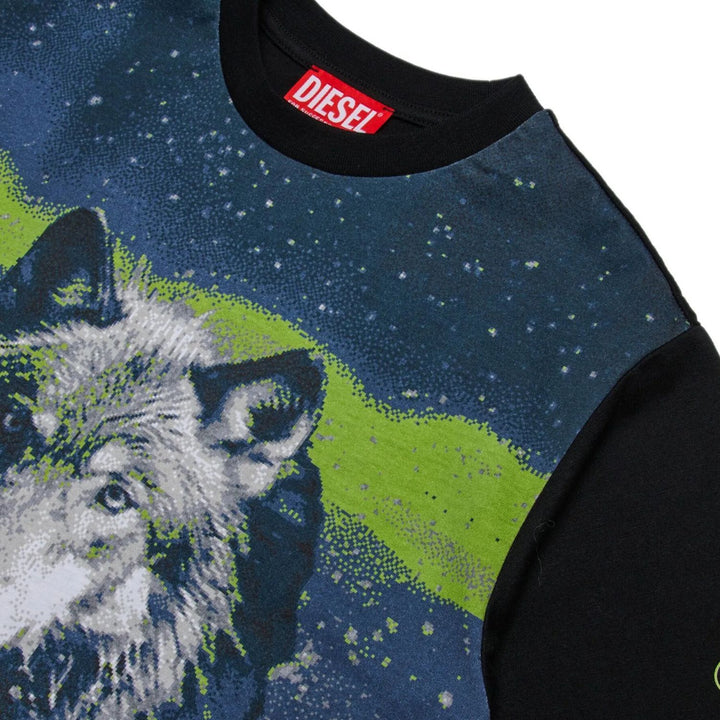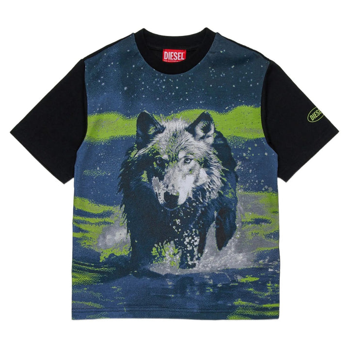 Cool and casual, this black Diesel T-shirt features a bold wolf print on the front. Crafted from soft cotton, it offers all-day comfort and effortless street-style appeal perfect for everyday wear.