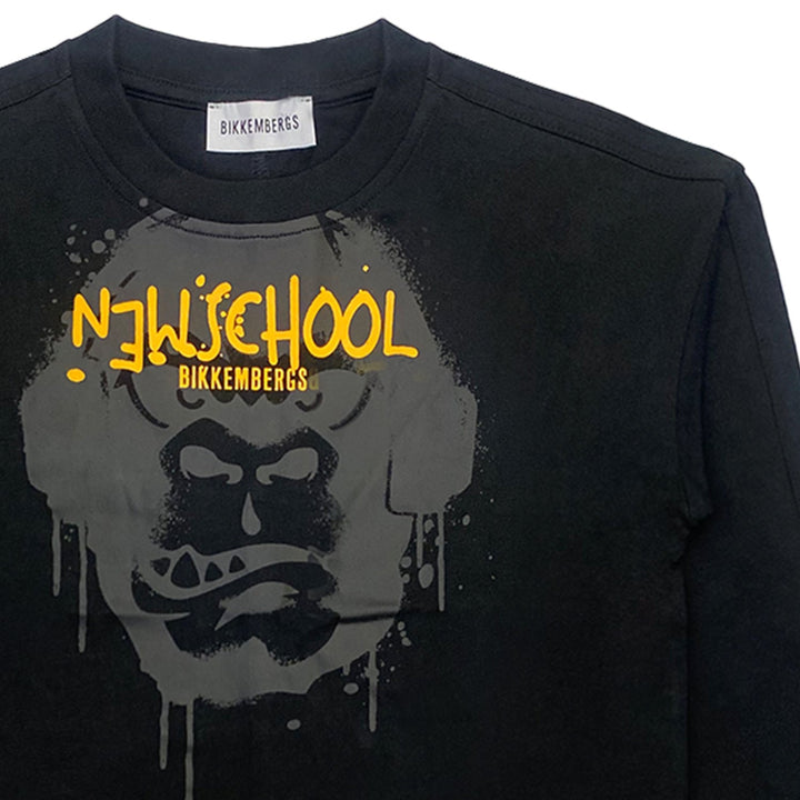 Trendy black graphic-print T-shirt for boys by Bikkembergs, made from soft cotton for a sporty and stylish look.