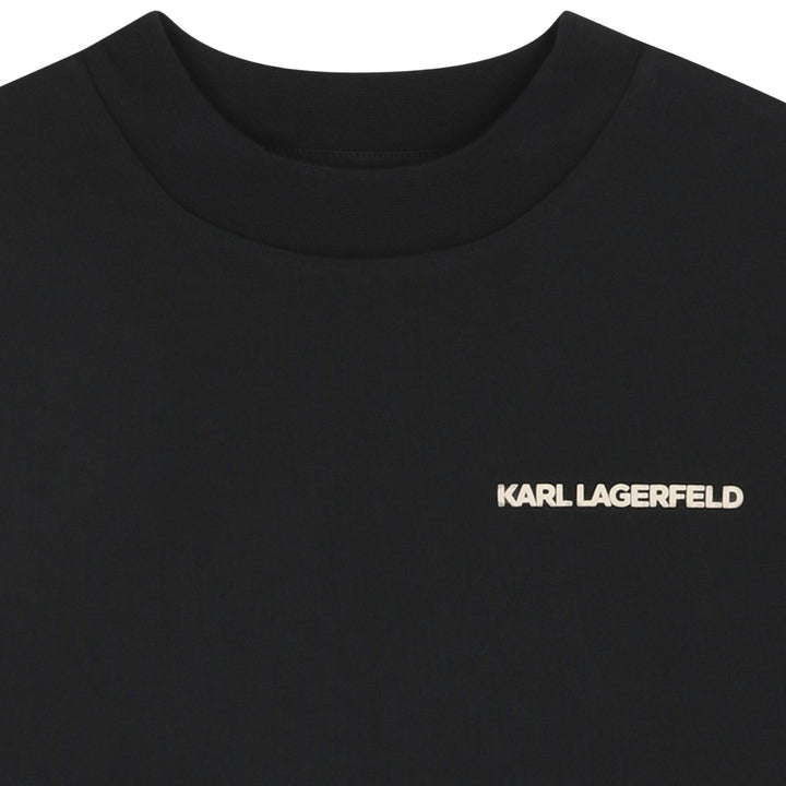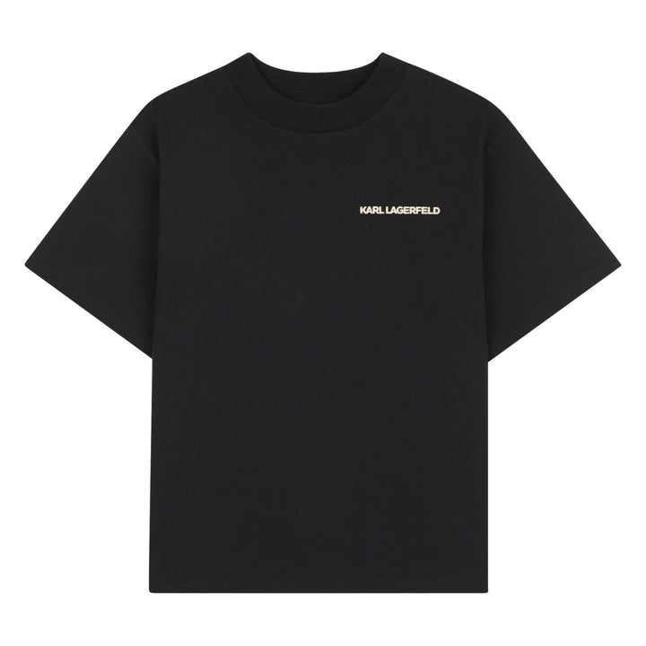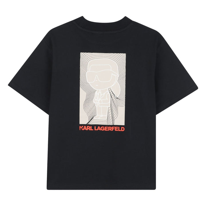 Cool black graphic-print T-shirt for boys by Karl Lagerfeld, made from soft cotton for a stylish and comfortable fit.