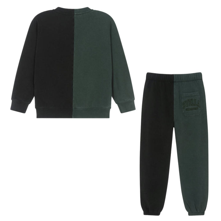Crafted from 100% cotton, this two-tone tracksuit from Stella McCartney Kids features a stylish black and green design. Soft, breathable, and comfortable perfect for active days or casual outings.