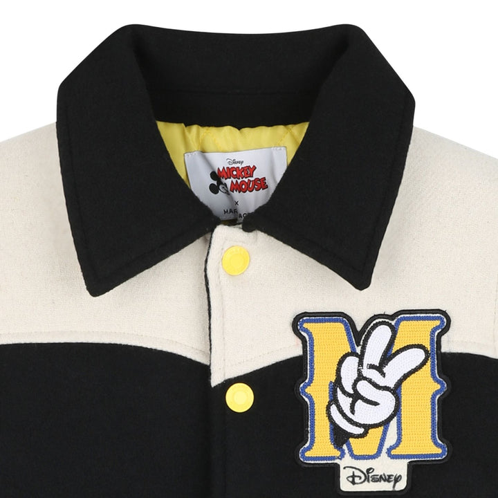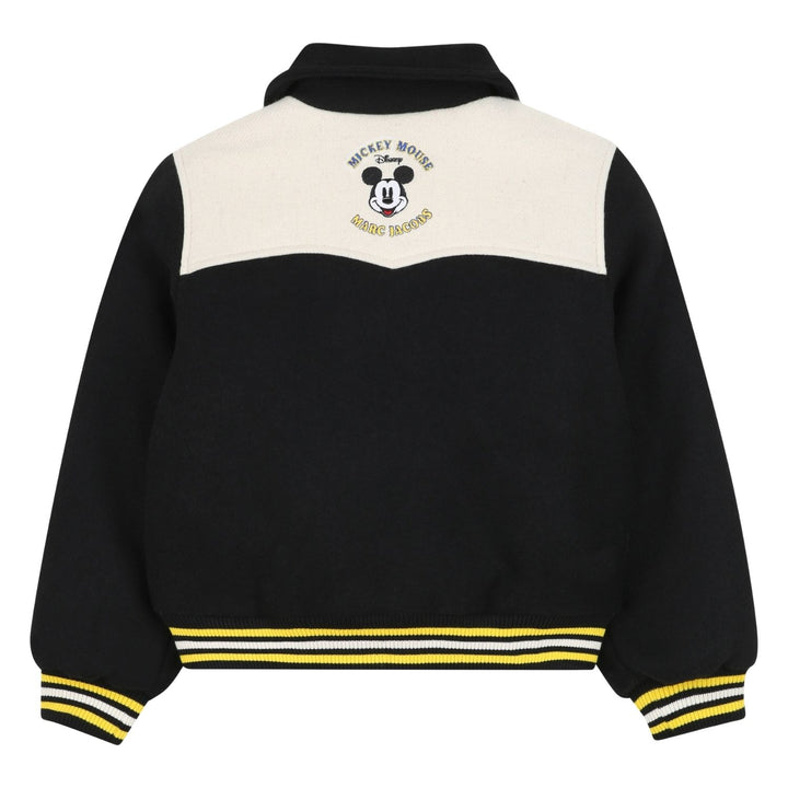 A sleek black bomber jacket featuring an elegant logo embroidery offering a stylish comfortable, and versatile outerwear look for boys.
