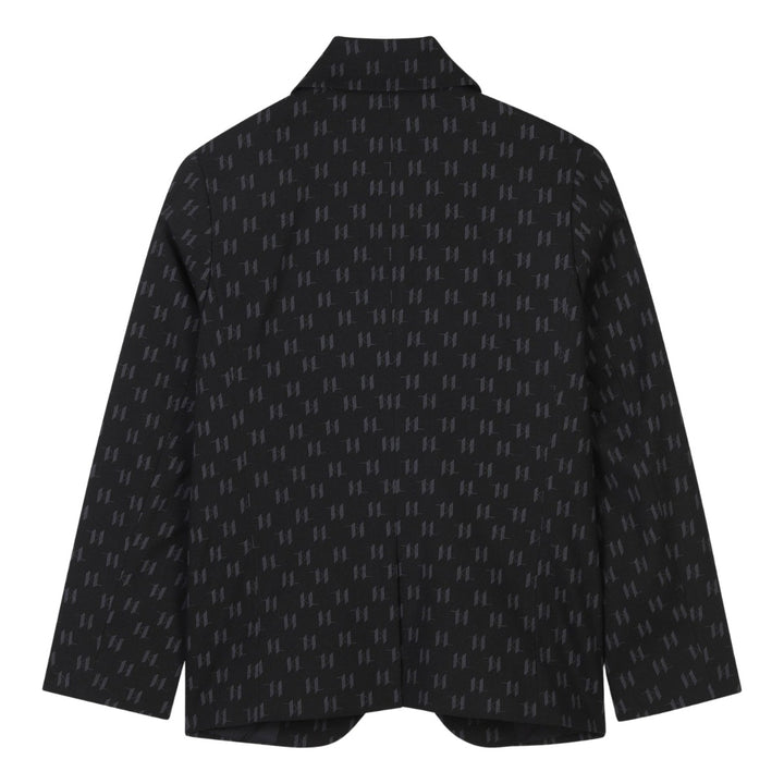 This stylish Karl Lagerfeld Kids blazer is a sophisticated addition to any young fashion enthusiast wardrobe. Crafted in black fabric with an all-over tonal monogram pattern, it exudes elegance while maintaining a modern, trendy vibe.