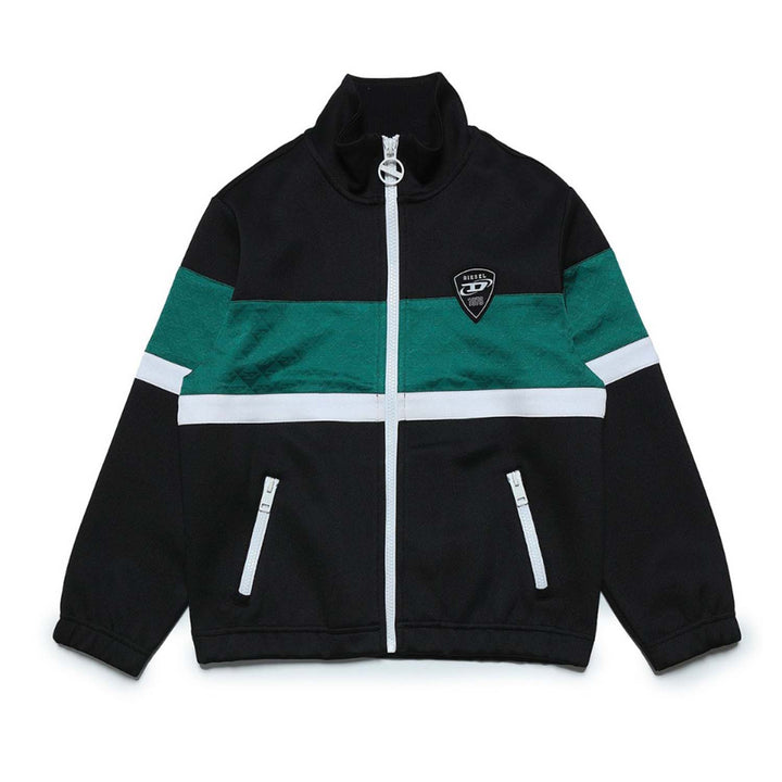 Long-sleeved, zippered sweatshirt in technical fabric with ribbed hem and cuffs. Features contrasting colorblock and monogram details, zippered front pockets and a heart-side logo patch.