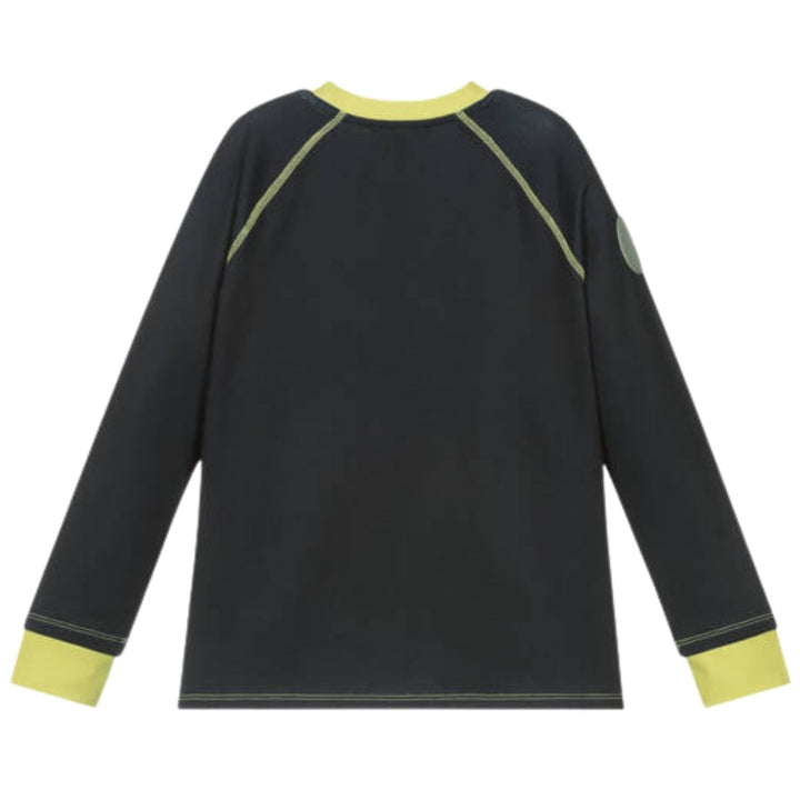 A sporty black ski T-shirt featuring a stylish logo patch, crafted from 92% polyester and 2% elastane for flexibility, comfort, and durability.