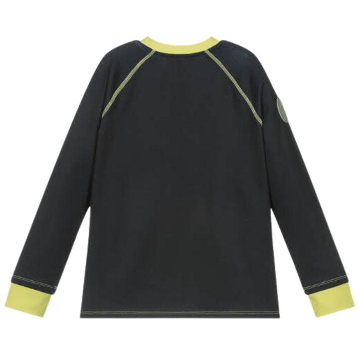 A sporty black ski T-shirt featuring a stylish logo patch, crafted from 92% polyester and 2% elastane for flexibility, comfort, and durability.
