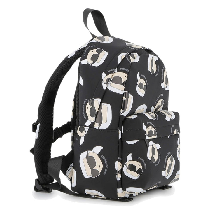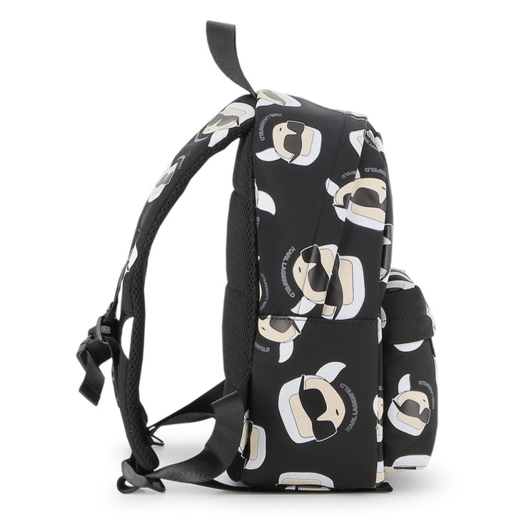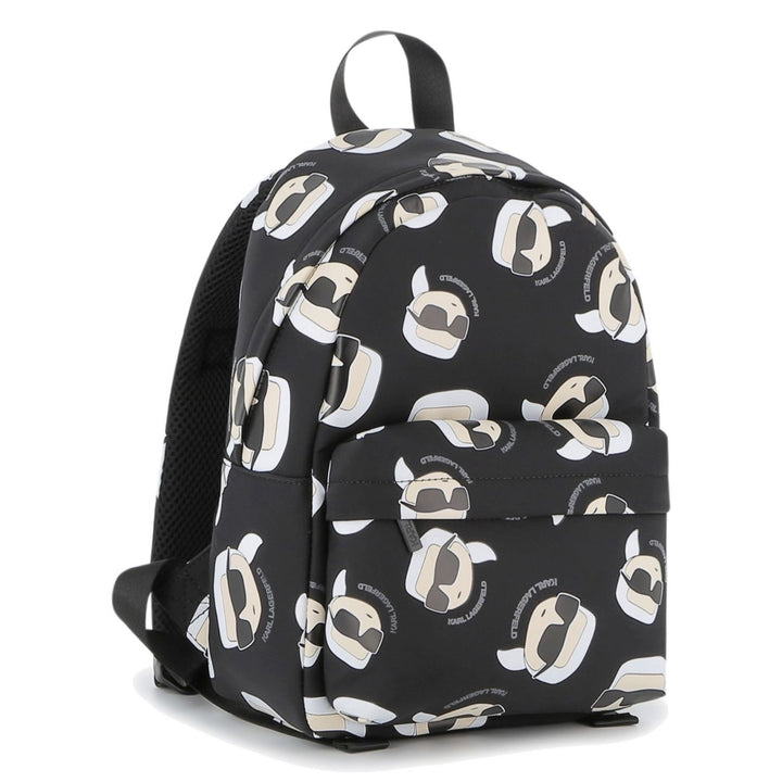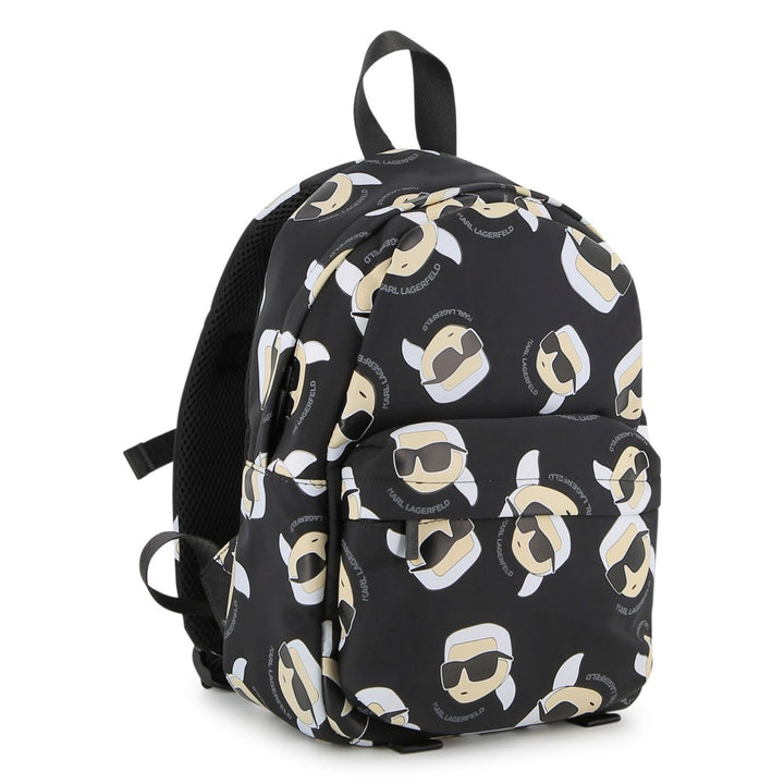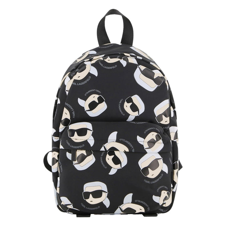 Sleek black logo-print backpack for boys by Karl Lagerfeld, featuring multiple compartments and adjustable straps for everyday style.