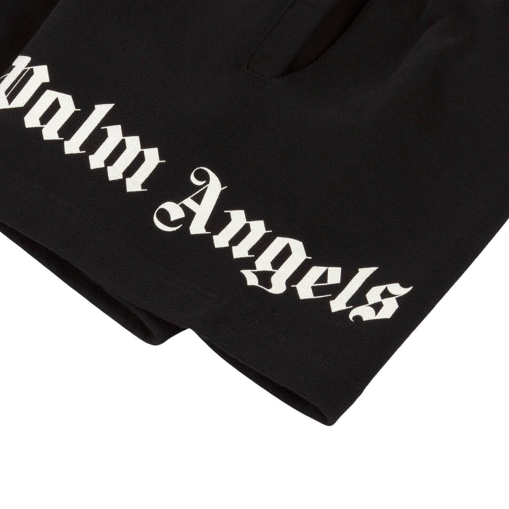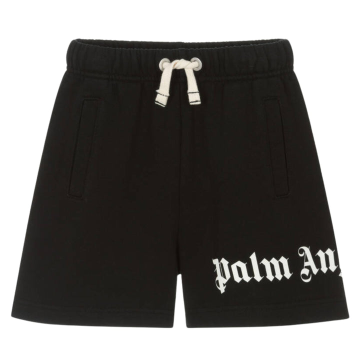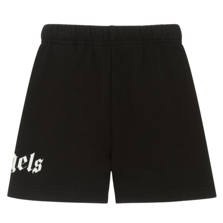 Comfortable casual black track shorts for boys by Palm Angels. Made in a mid-weight cotton jersey, they have a white Palm Angels logo on one leg. For a better fit, the stretchy waistband has a drawstring.