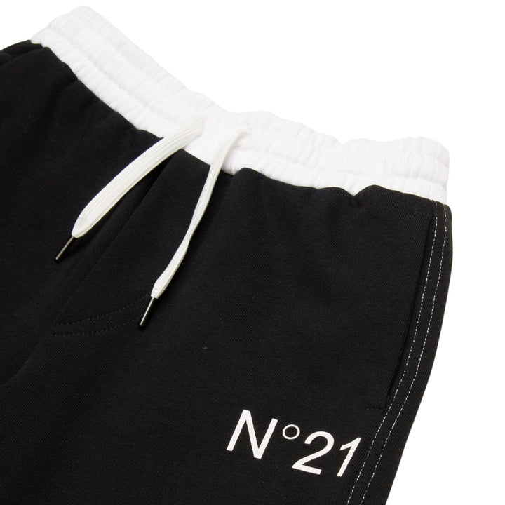 Fleece short pants. Drawstring waist with colorblock effect. N21 Institutional logo on the front. Contrasting color stitching. Front welt pockets. Raw cut hem at bottom. Made of 100% cotton.