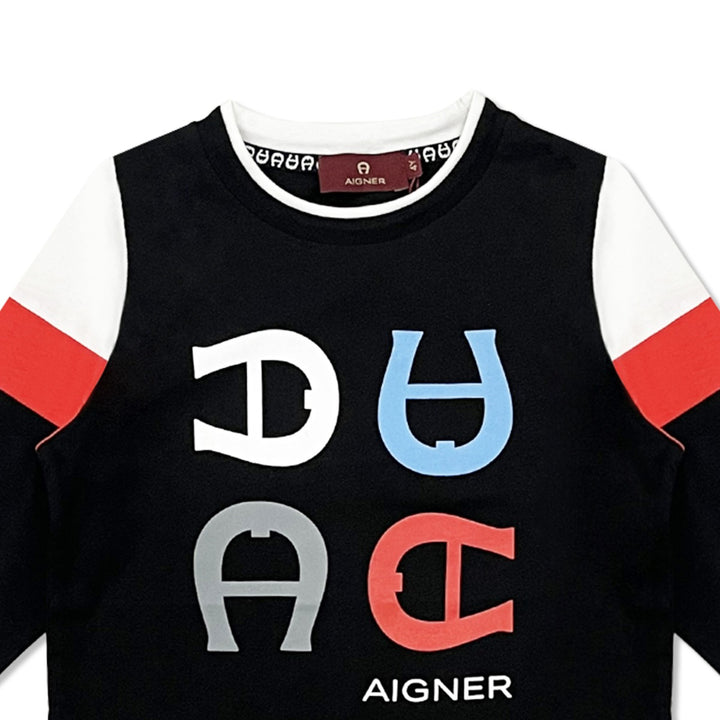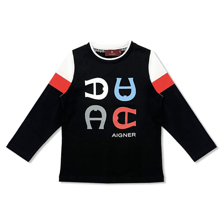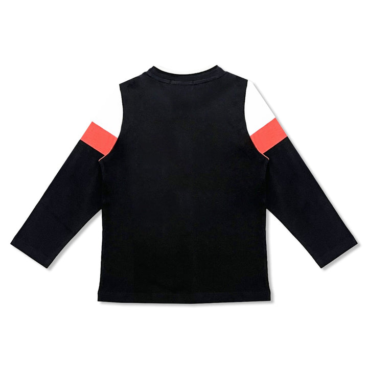 Boys Black Logo-Print Full-Sleeves T-Shirt