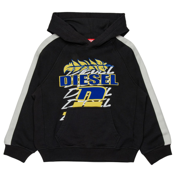 Cozy and cool this black Diesel hoodie features a bold logo print. Perfect for casual everyday style.