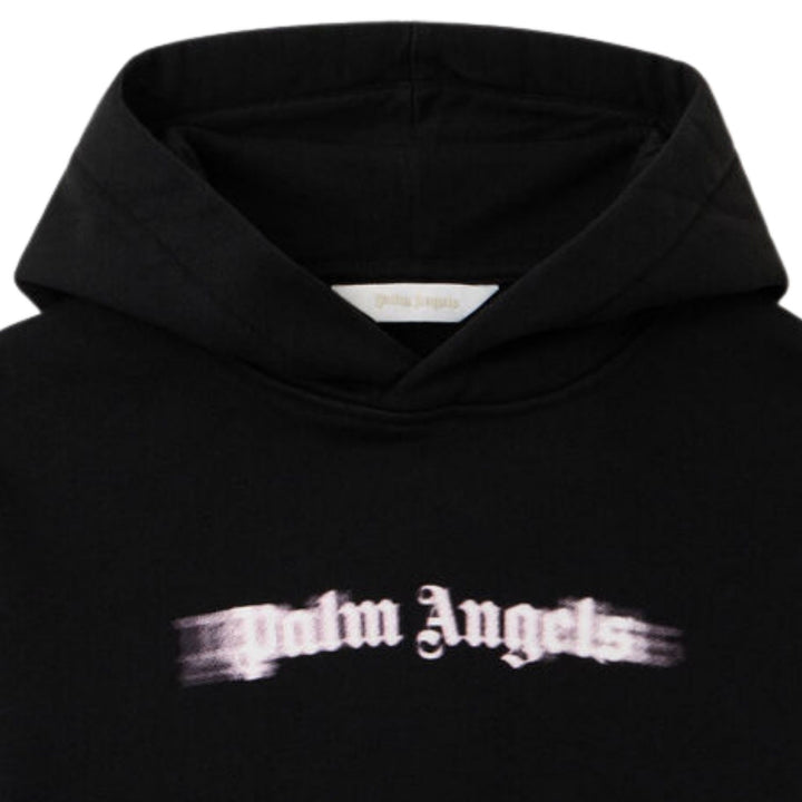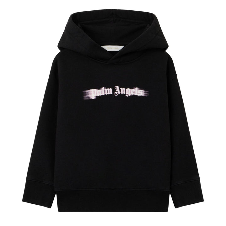 Boys black hoodie by Palm Angels made from premium cotton, featuring the signature logo print on the chest, ribbed trims, and a cozy hood for a relaxed streetwear look.