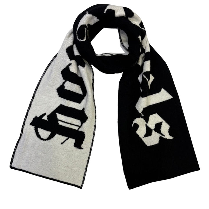 Crafted for warmth and streetwear flair, this boys blue knitted scarf from Palm Angels showcases the bold logo print across its length.