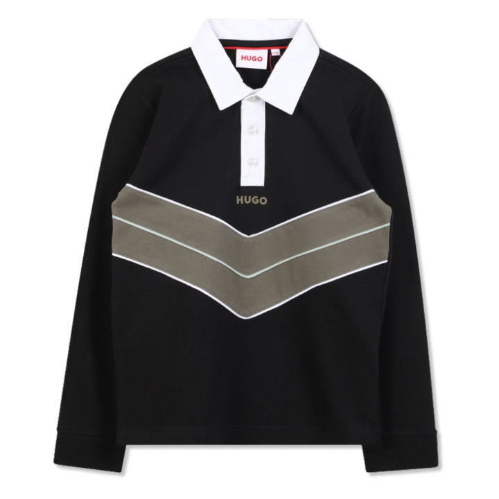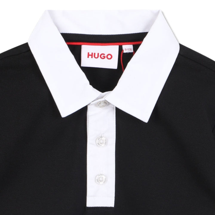 A refined take on casual style, this Hugo polo is crafted from premium cotton with a signature logo print. Its sleek black hue and polished finish bring a touch of luxury to everyday dressing.