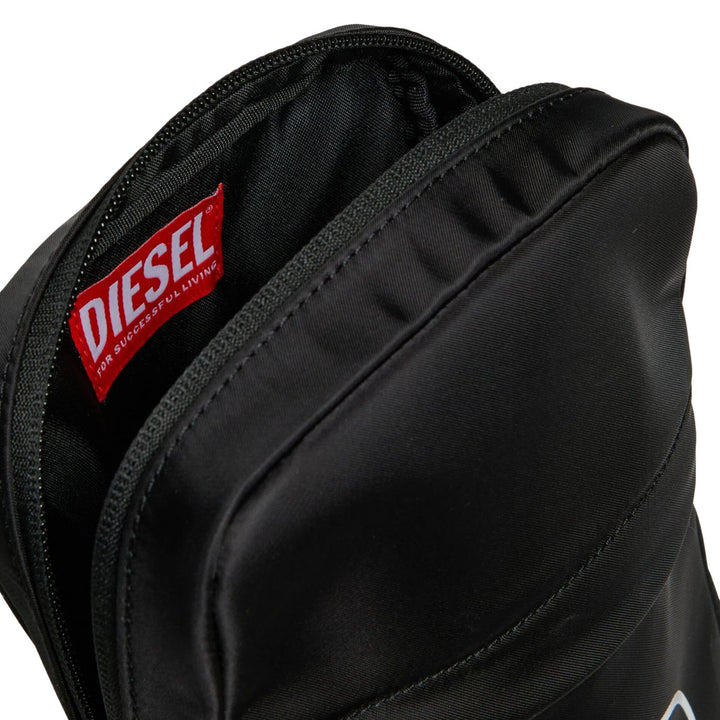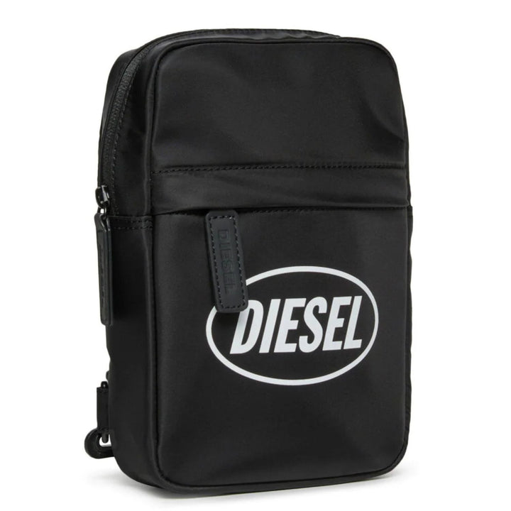 Durable and stylish, this black Diesel shoulder bag features a bold logo print. Ideal for school, travel, or everyday use.