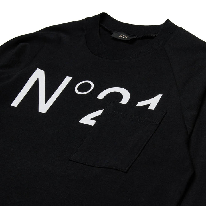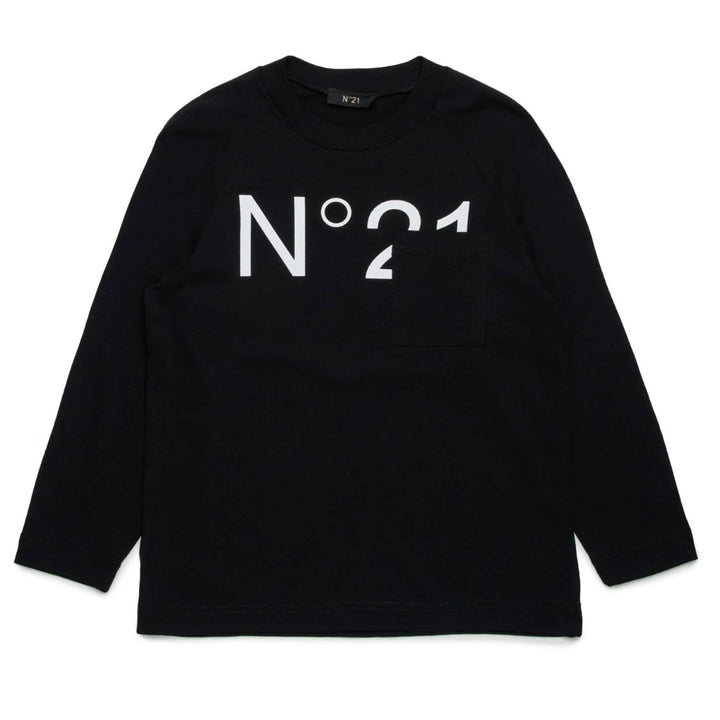 Boys Black Logo-Print T-Shirt by N21 featuring a classic fit and bold front logo a stylish staple for everyday wear.