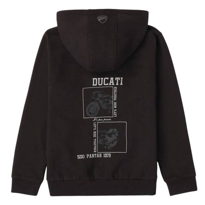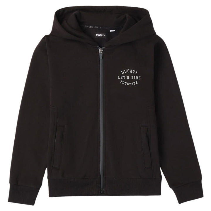 The kids hoodie cardigan from Ducati, is the ultimate choice for the coldest days, while also adding style to kids' outfits. It features a hood to protect the child's head from the cold.