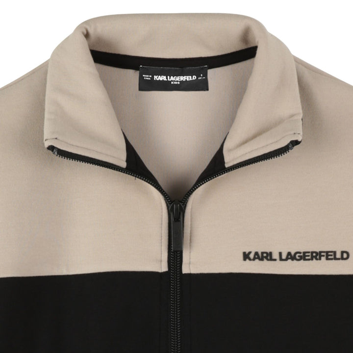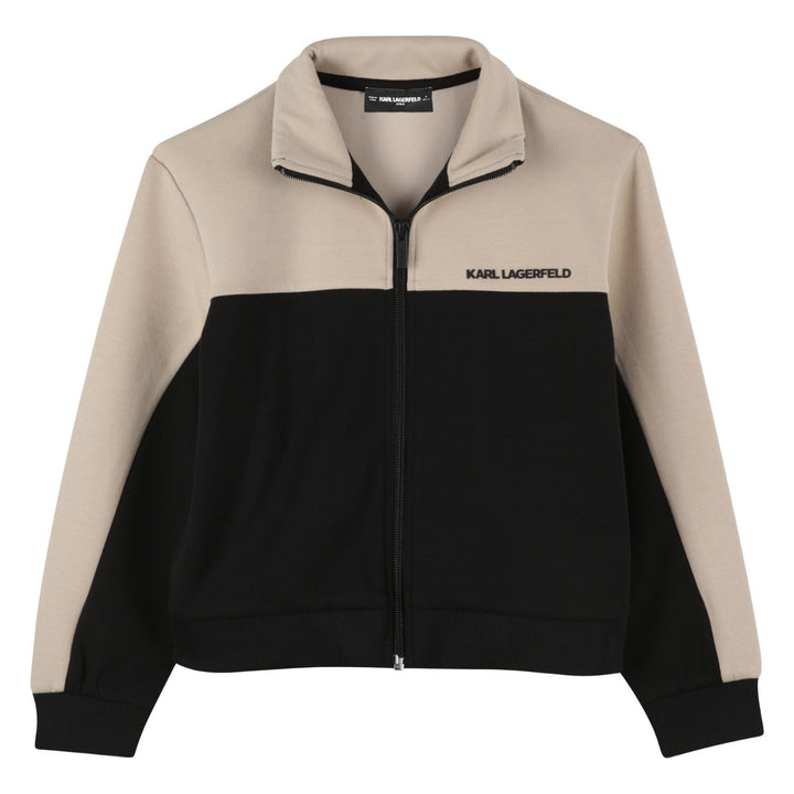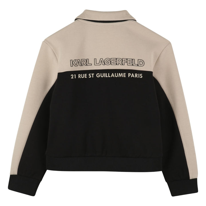 Classic black zip-up sweatshirt for boys by Karl Lagerfeld, featuring a sleek logo print and soft cotton blend for everyday comfort.