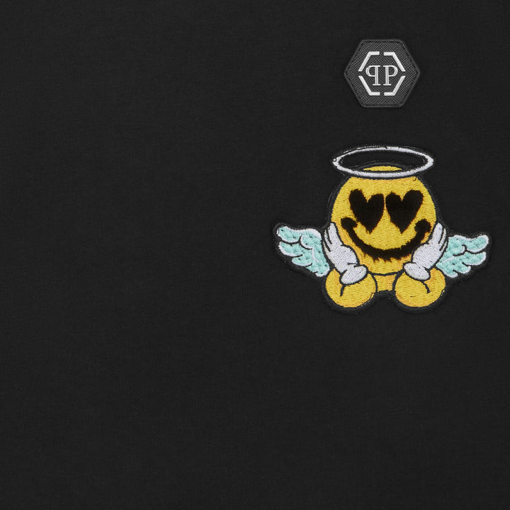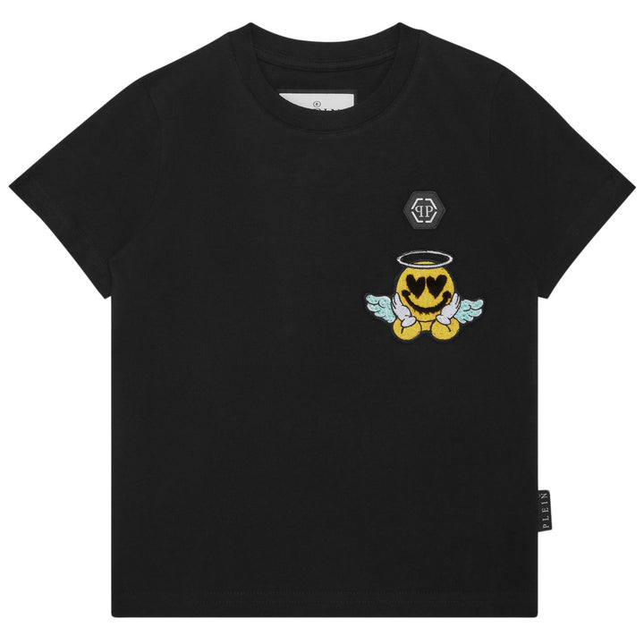Boys Black Logo Smiley-Patch Cotton T-Shirt