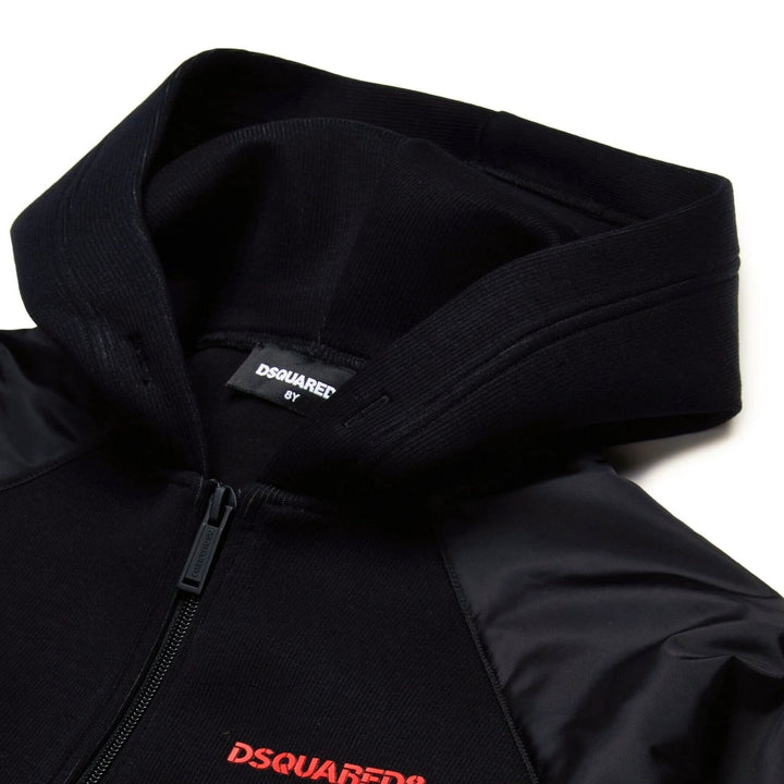 Full-zip hooded jacket. Made of ribbed neoprene with lightly padded shiny nylon sleeves. Rubberised Dsquared2 logo on the front left side. Front pockets with zips. An easy-to-match casual option.