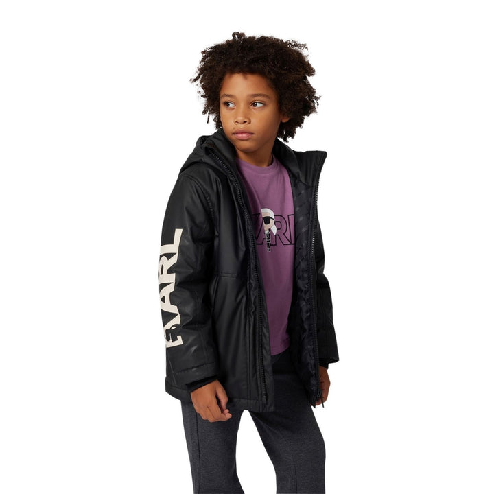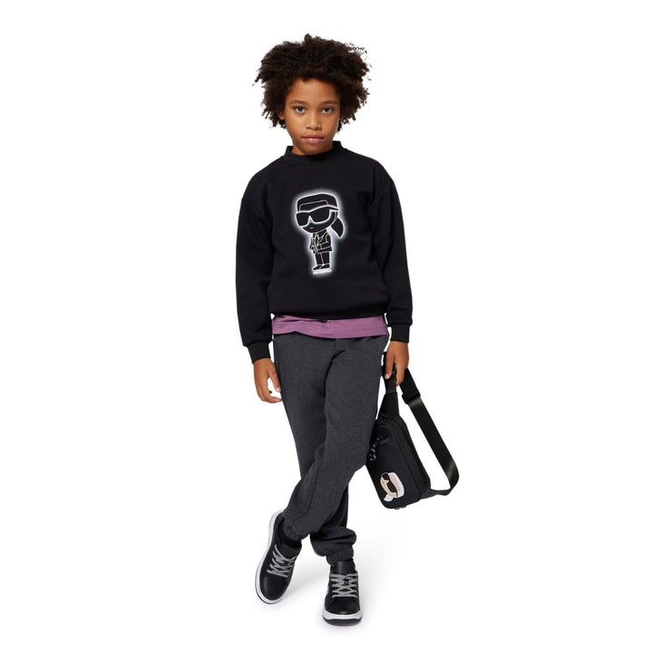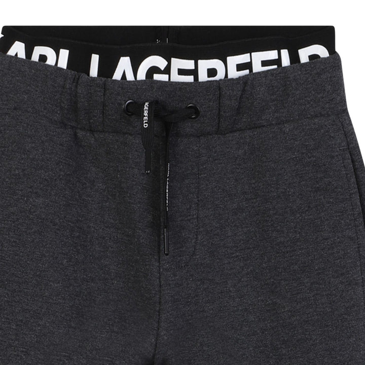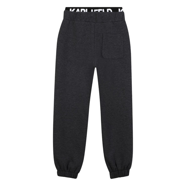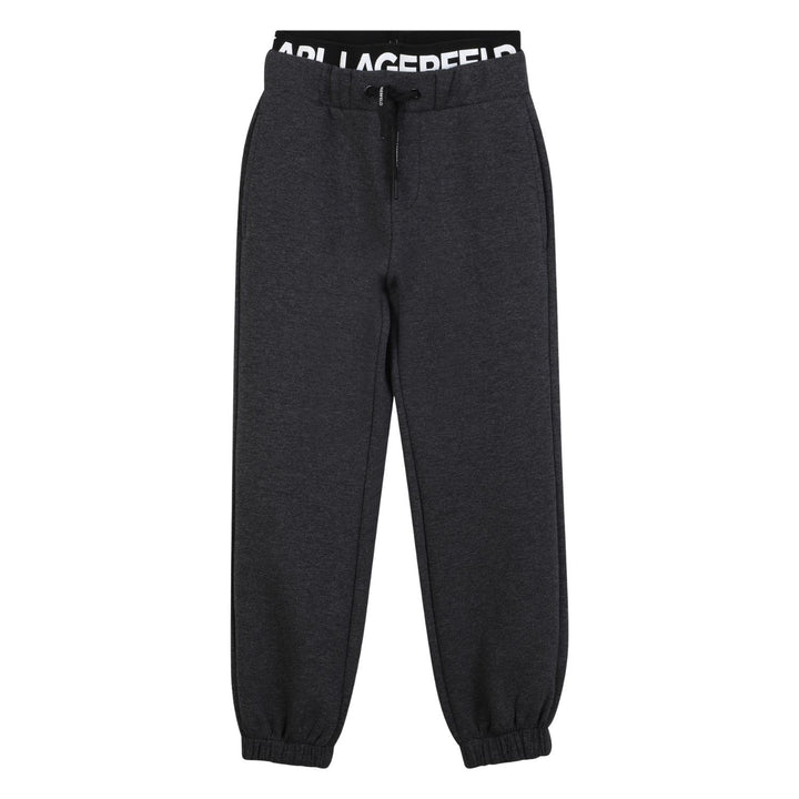 Stylish black joggers for boys by Karl Lagerfeld, featuring a logo-detailed waistband and soft cotton blend for all-day comfort.