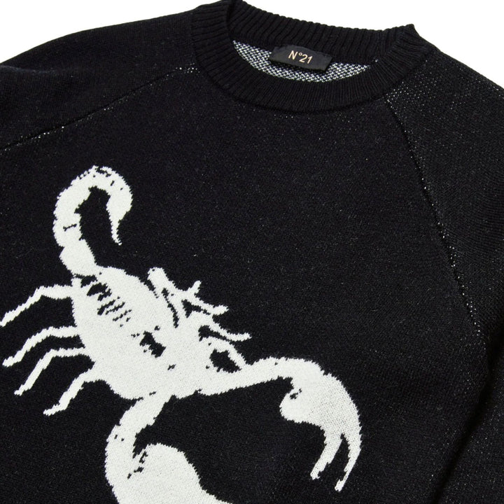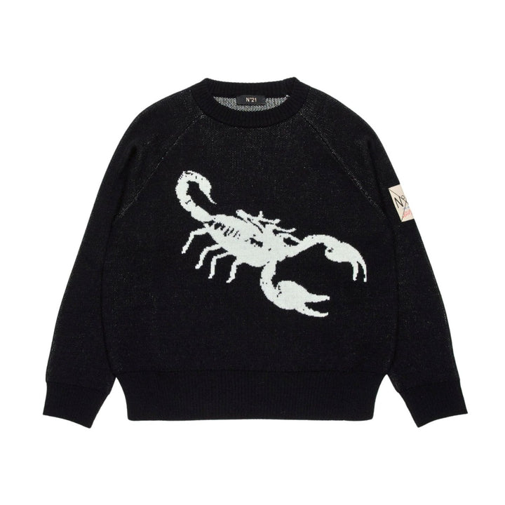 Long-sleeved crew-neck sweatshirt in wool-blend knit. Features a jacquard construction with a scorpion in a contrasting colour on the front. N21 label on the sleeve. A garment with a refined style, suitable for informal occasions.