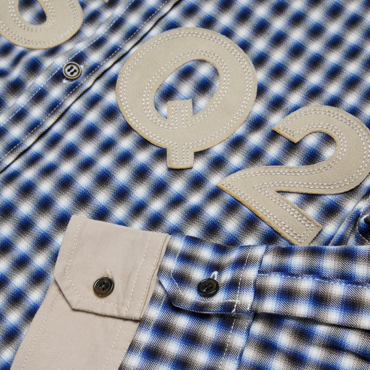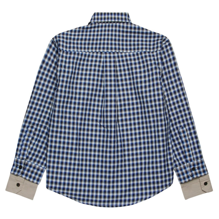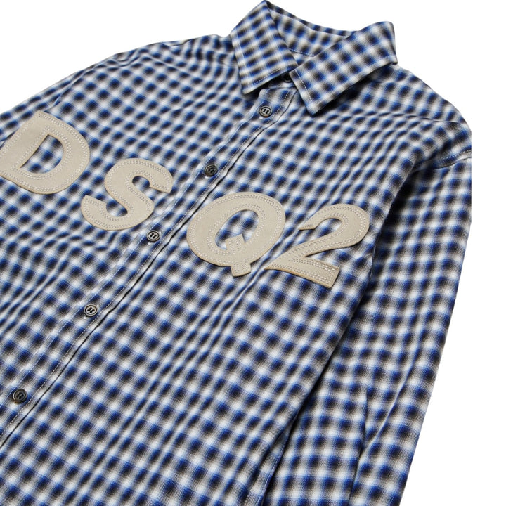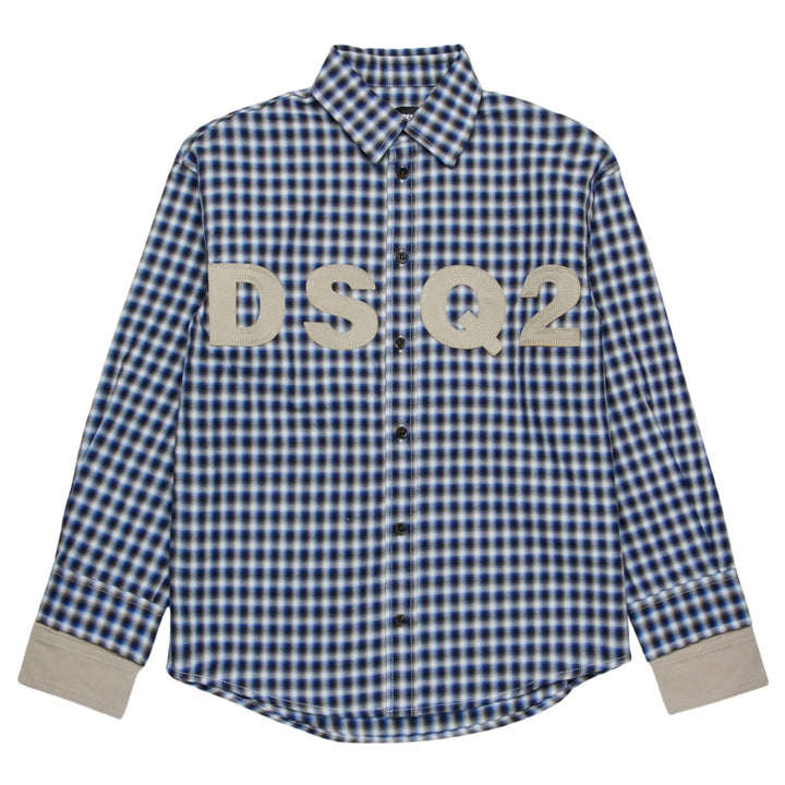 Long-sleeved shirt in lightweight cotton. Featuring an all-over print check pattern. DSQ2 logo with raw cut hem applied on the front. Double cuffs with contrasting colour insert.