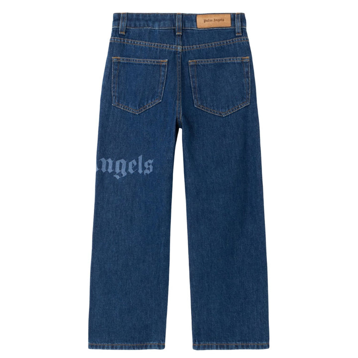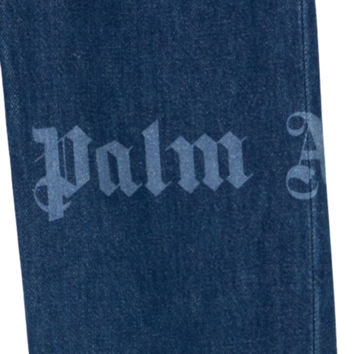 These blue denim jeans from Palm Angels feature the brands bold logo print for a cool urban look. Crafted from premium cotton denim, they offer a relaxed fit with classic five-pocket styling and a button fastening a perfect mix of comfort and streetw