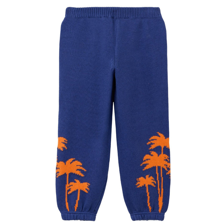 These premium blue joggers from Palm Angels blend comfort and streetwear style. Crafted from a soft knitted fabric, they feature an embroidered logo detail on the leg, ribbed cuffs, and an elastic waistband for a snug fit.