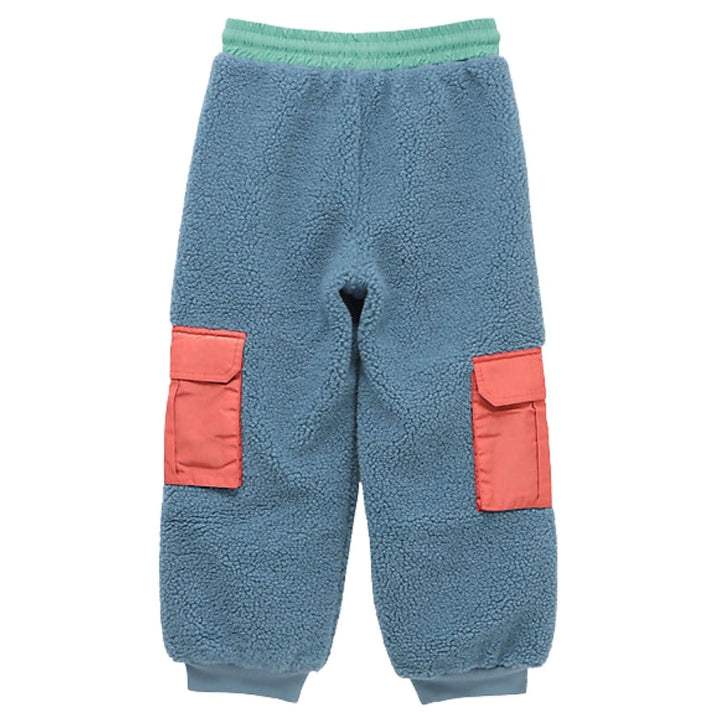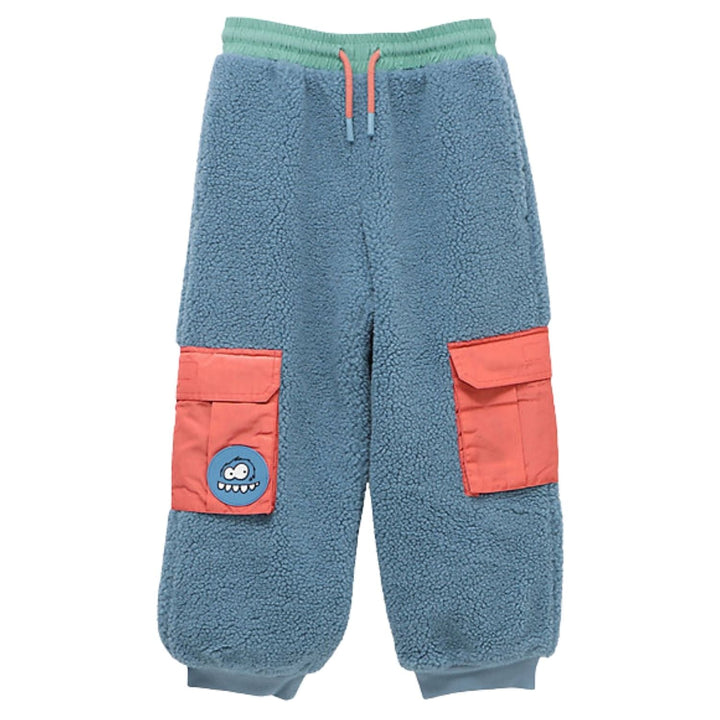 Made from 1% polyester, these blue faux fur trousers feature a playful monster patch design. Soft, cozy, and fun perfect for adding a touch of character to your little ones outfit.