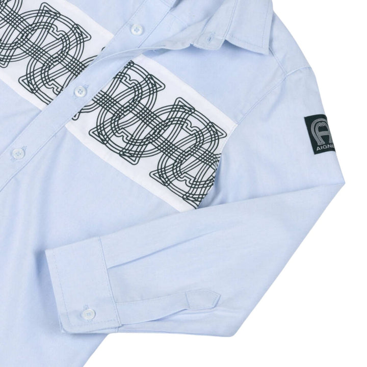Smart and stylish, this blue shirt by Aigner features a standout graphic print that adds a modern edge to a classic silhouette. Made from 1% soft cotton, it s perfect for both casual outings and more polished occasions.