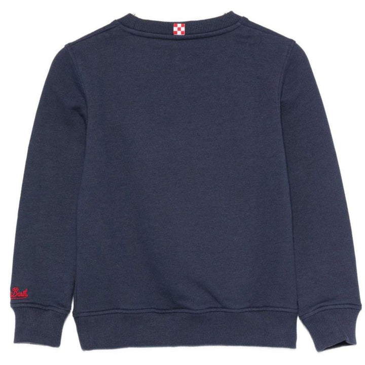 Boys blue sweatshirt featuring a fun graphic print, designed for a cool and casual everyday look with soft and comfortable fabric.