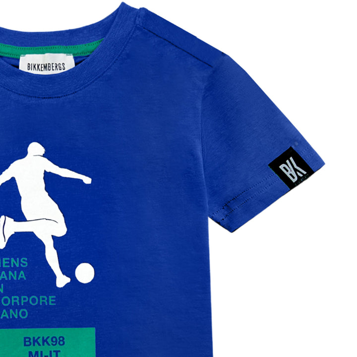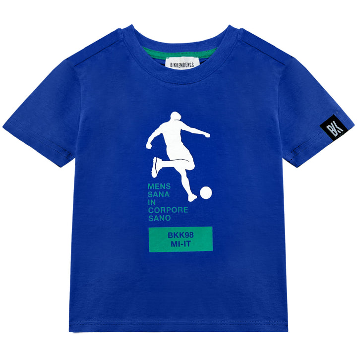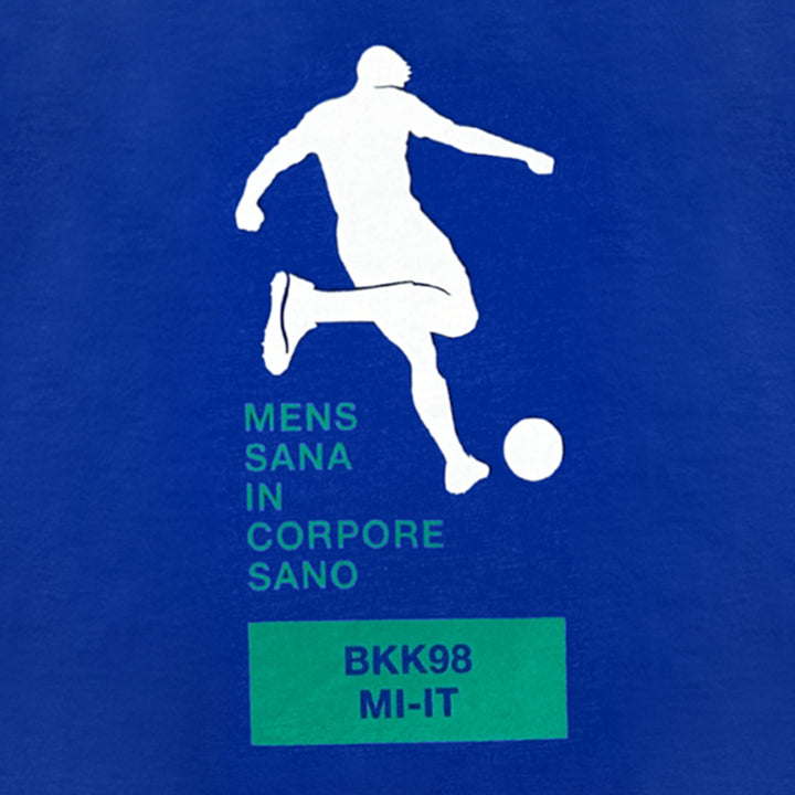 This vibrant blue tee features a dynamic football player graphic with the quote "Mens Sana in Corpore Sano a healthy mind in a healthy body. A sporty and inspiring pick for active kids.