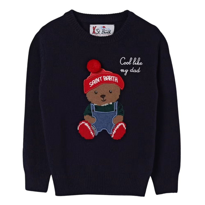 A cozy blue knitted sweatshirt for boys featuring a bold MC2 logo print on the front. Made from soft, comfortable fabric perfect for everyday warmth with a stylish, premium look.