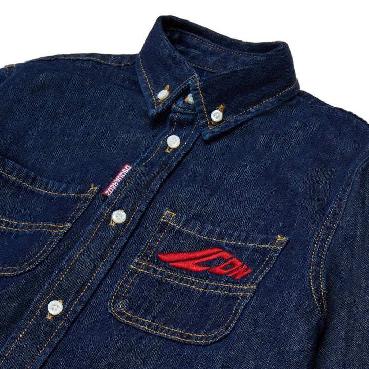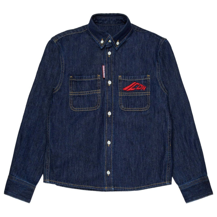 Give his wardrobe a stylish upgrade with this Dsquared2 boys blue denim shirt, crafted from 100% cotton for durability and comfort. Featuring a bold logo-icon detail, this shirt blends classic denim style with a modern designer touch -perfect for layering or wearing on its own.