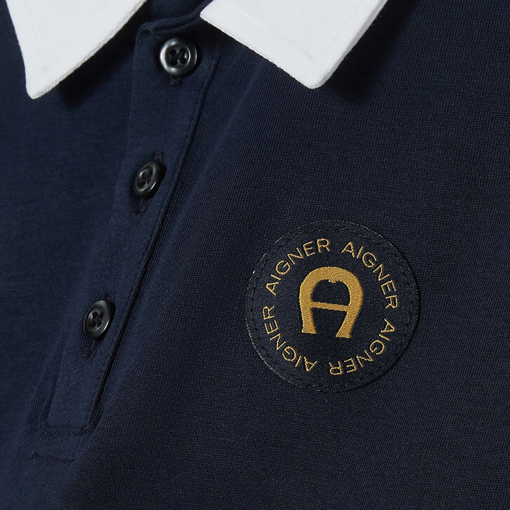 A classic with a modern twist, this blue logo polo T-shirt from Aigner is crafted from 1% soft cotton for all-day comfort. Featuring a traditional collar, button placket, and signature logo detail, it's perfect for smart-casual looks or elevated ever