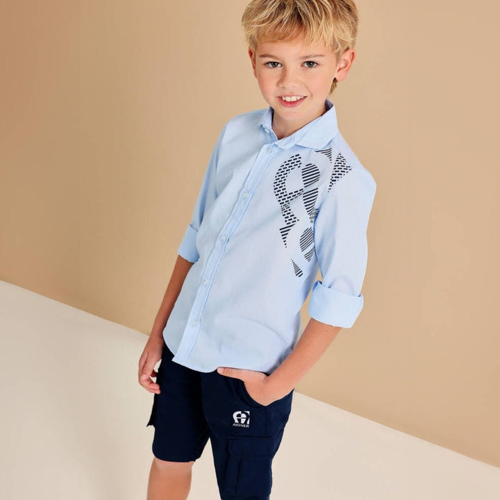 Boys Blue Logo-Print Cotton Shirt